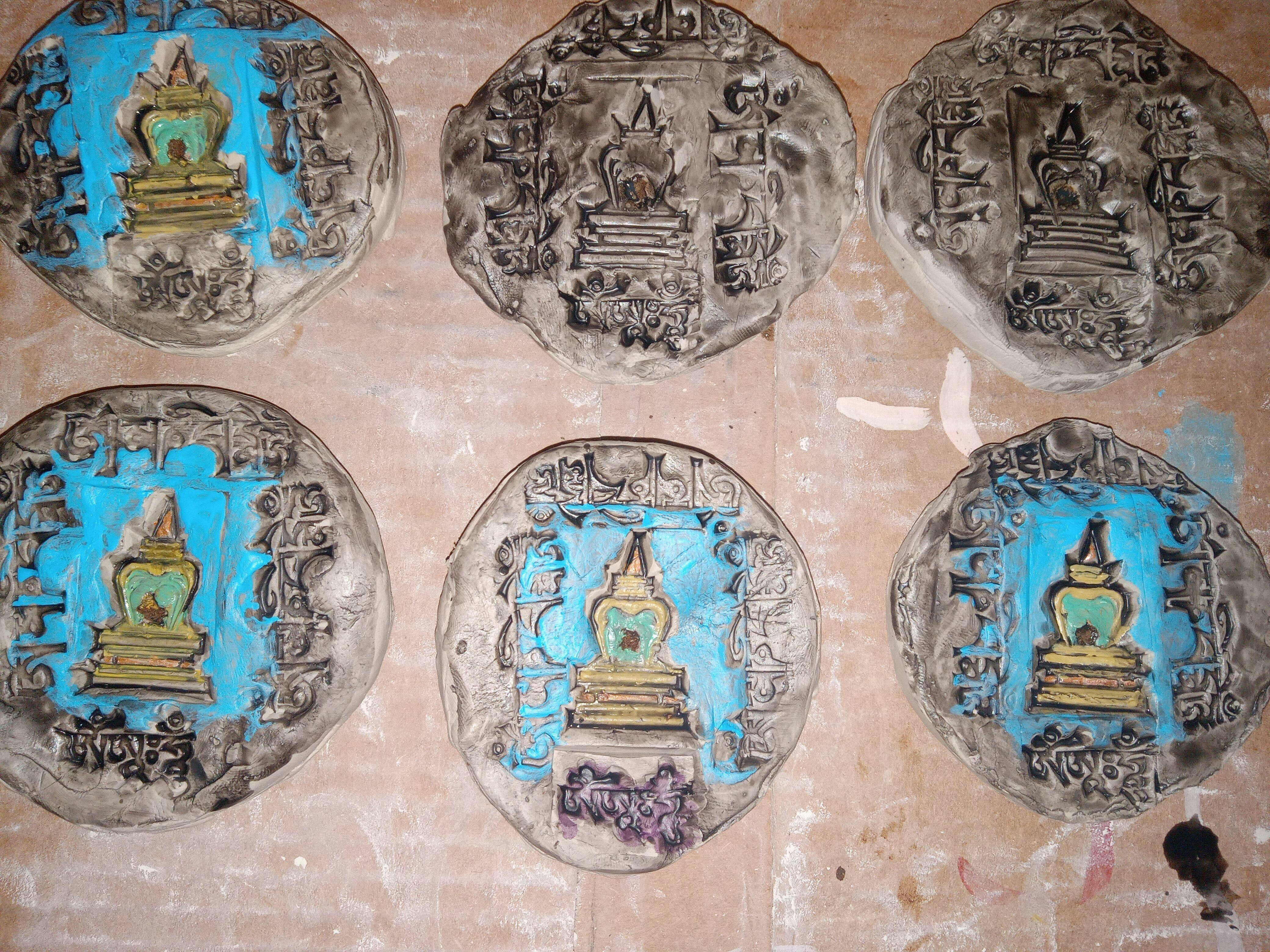 Om Ah Hung represents body, speech and mind of the Buddha. Wood block stamp made in Nepal. Size: 1" by .5/8".