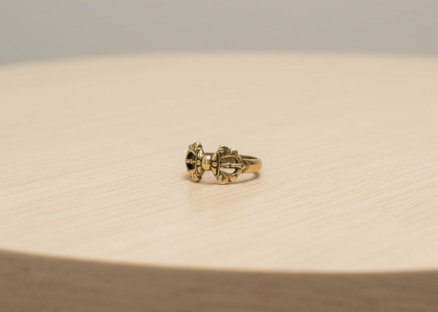 Made from solid brass, this ring carries the timeless symbolism of the Vajra-the indestructible thunderbolt of wisdom. Bring the power and protection of the Vajra into your everyday life with this handcrafted Vajra ring. Vajra also known as Dorje represents Wisdom, unbreakable strength, clarity and awakened mind.