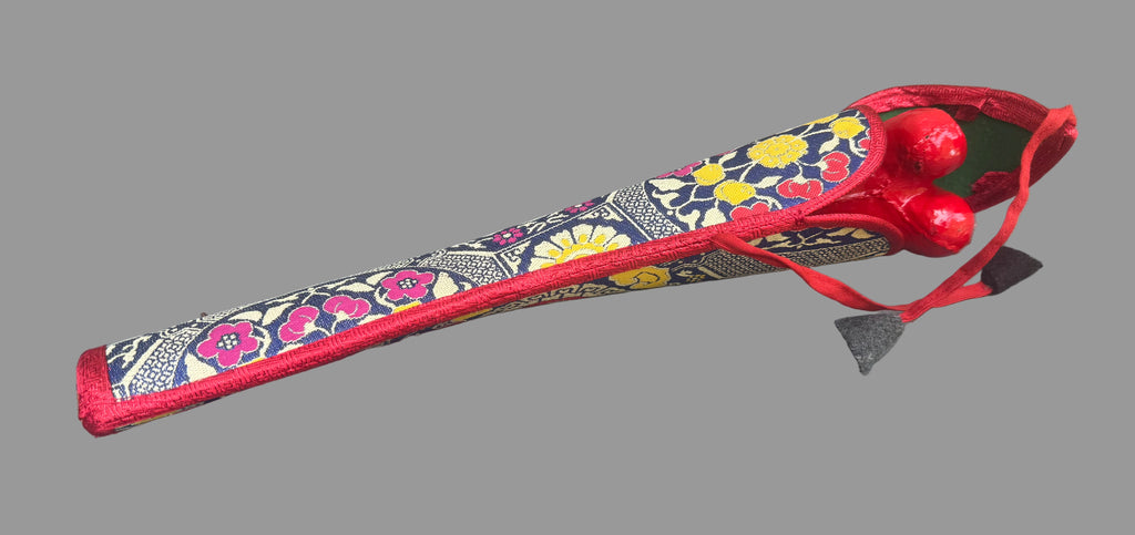 Kangling thigh bone: Genuine thigh bone/femur known as Kangling is use as ritual object in Tibetan Tantric Buddhism. It is used mainly during the Chod practice along with Chod Drum. Mouthpiece has been filled with beeswax to create a great sound. Comes with brocade cover.