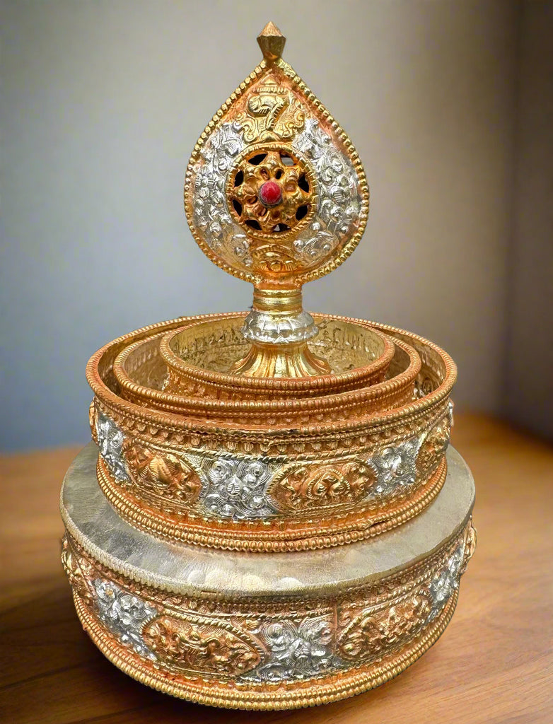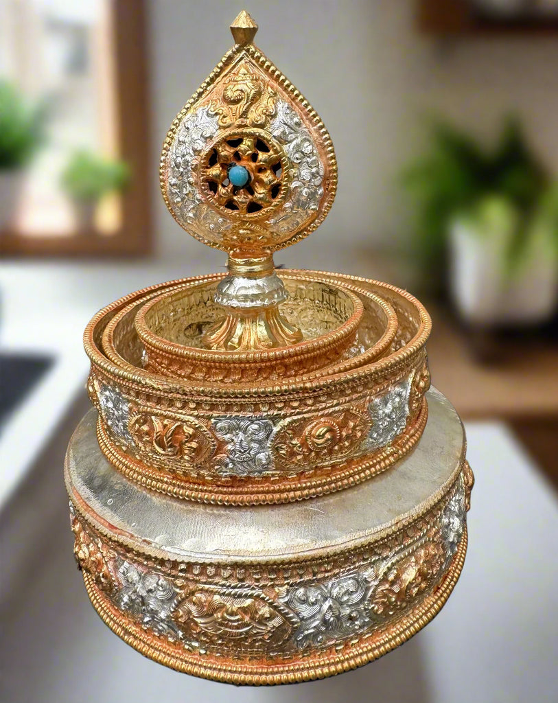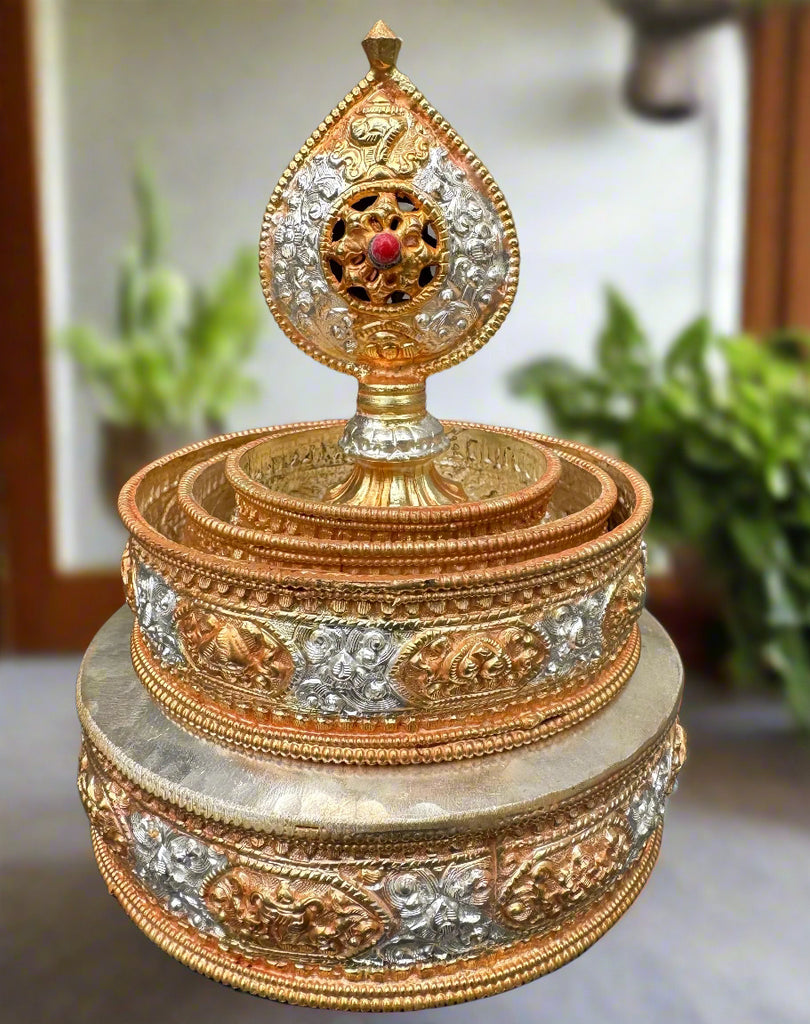 Doing the mandala offering is a way of clearing out all these negative states of mind. Here, “mandala” means the universe and everything in it. Practicing the mandala offering purifies the attachment, the stinginess, the miserliness, the clinging mind. Mandala offerings generate great merit for the practitioner to gain spiritual insight and understanding into the teachings and also to gain the ability to see Buddha's and Bodhisattva directly.