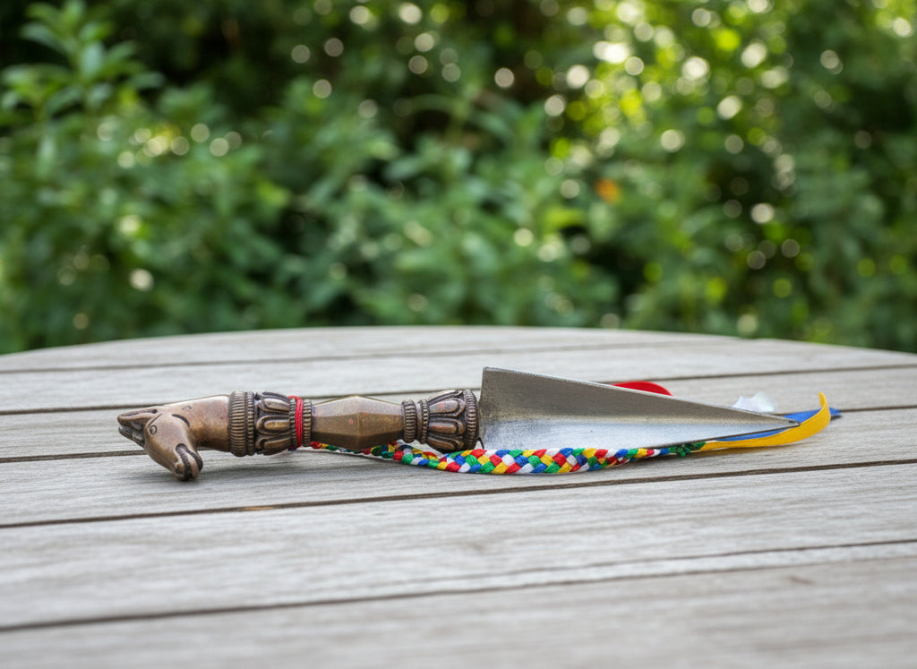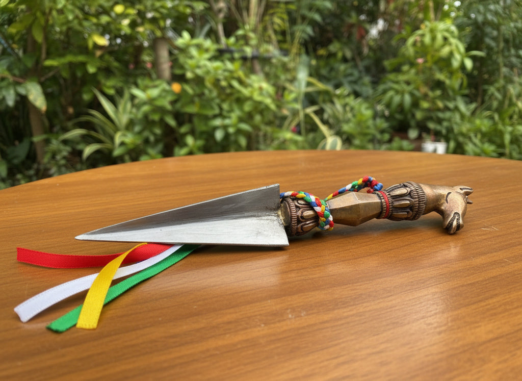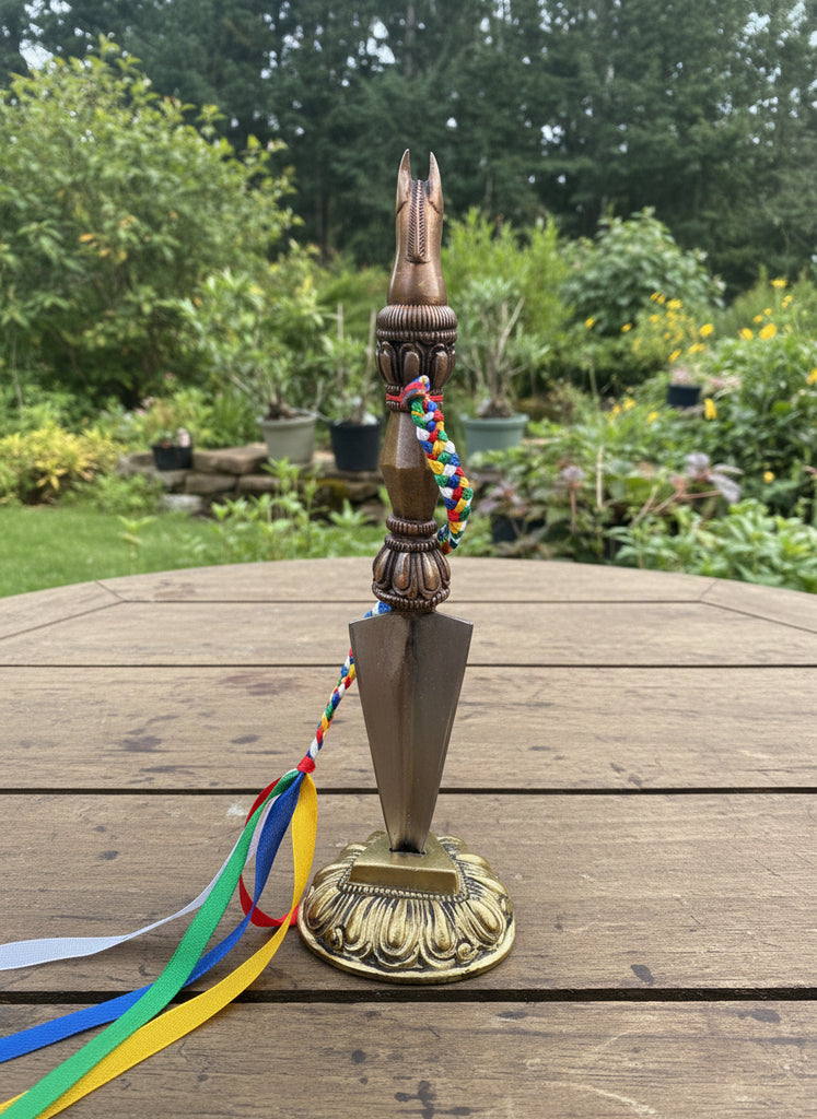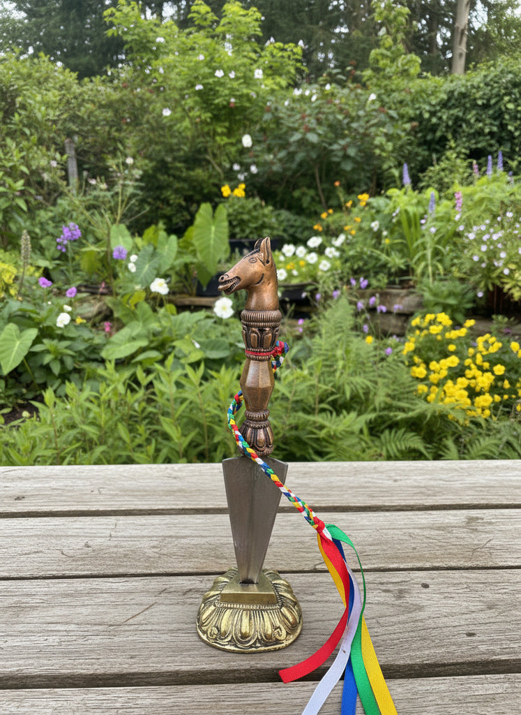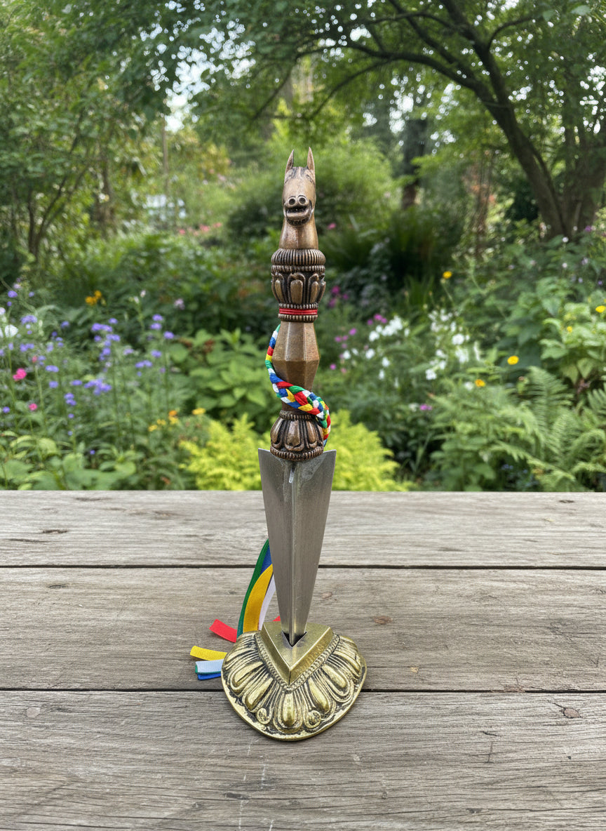 Phurba is a ritual dagger with a pointed three edge blade with either Vajra on the top of Horse Head. Hayagriva is the wrathful aspect of Amitabha (Yidam Tamdin). The horse crown is very profound. Hayagriva’s horse head represent’s wrathful speech.