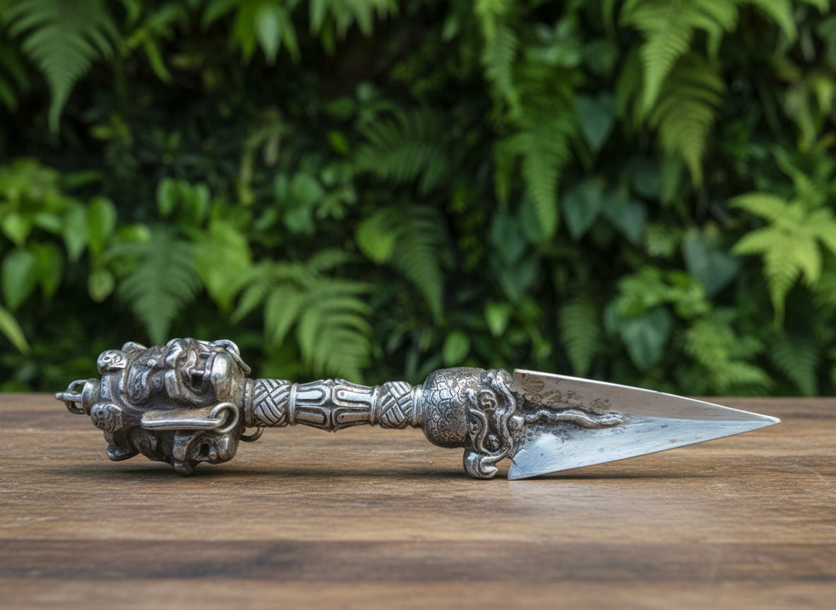 Phurba is used as a ritual implement to signify stability on a prayer ground during ceremonies, and only those initiated in its use, or otherwise empowered, may wield it. The energy of the Phurba is fierce, wrathful, piercing, affixing, transfixing.