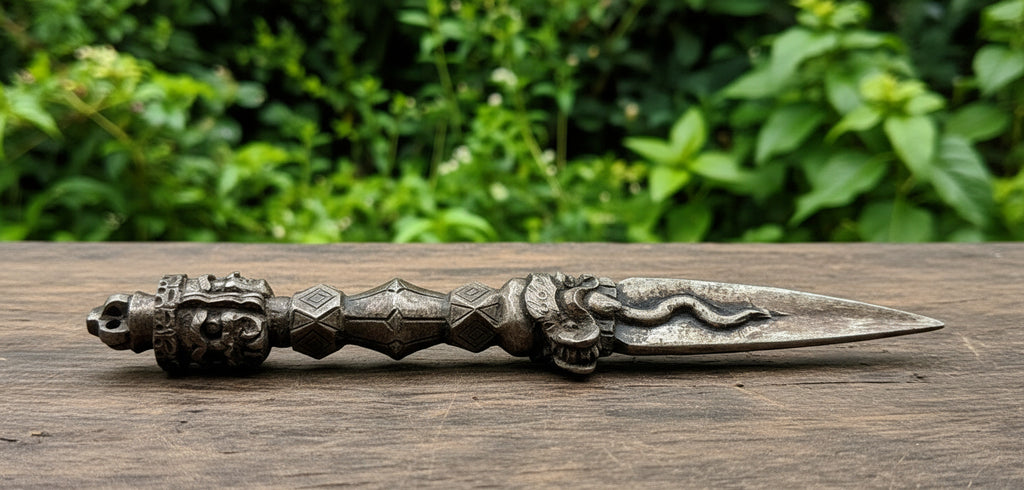 • Wrathful Activity: Phurbas made of iron are primarily used for "wrathful" practices, which in a Buddhist context means the forceful, compassionate destruction of deep-seated obstacles, delusions, and negative forces that impede spiritual progress.