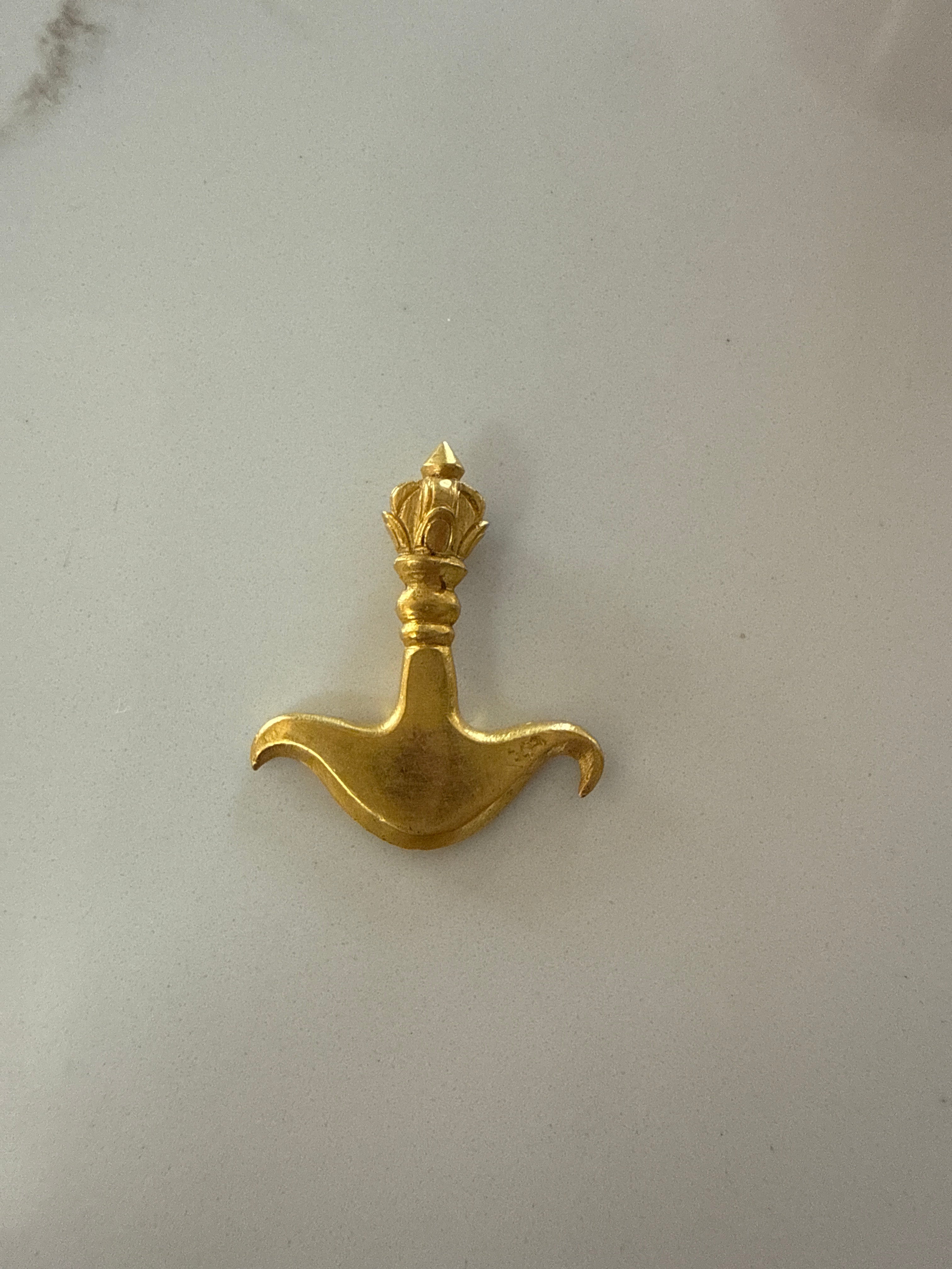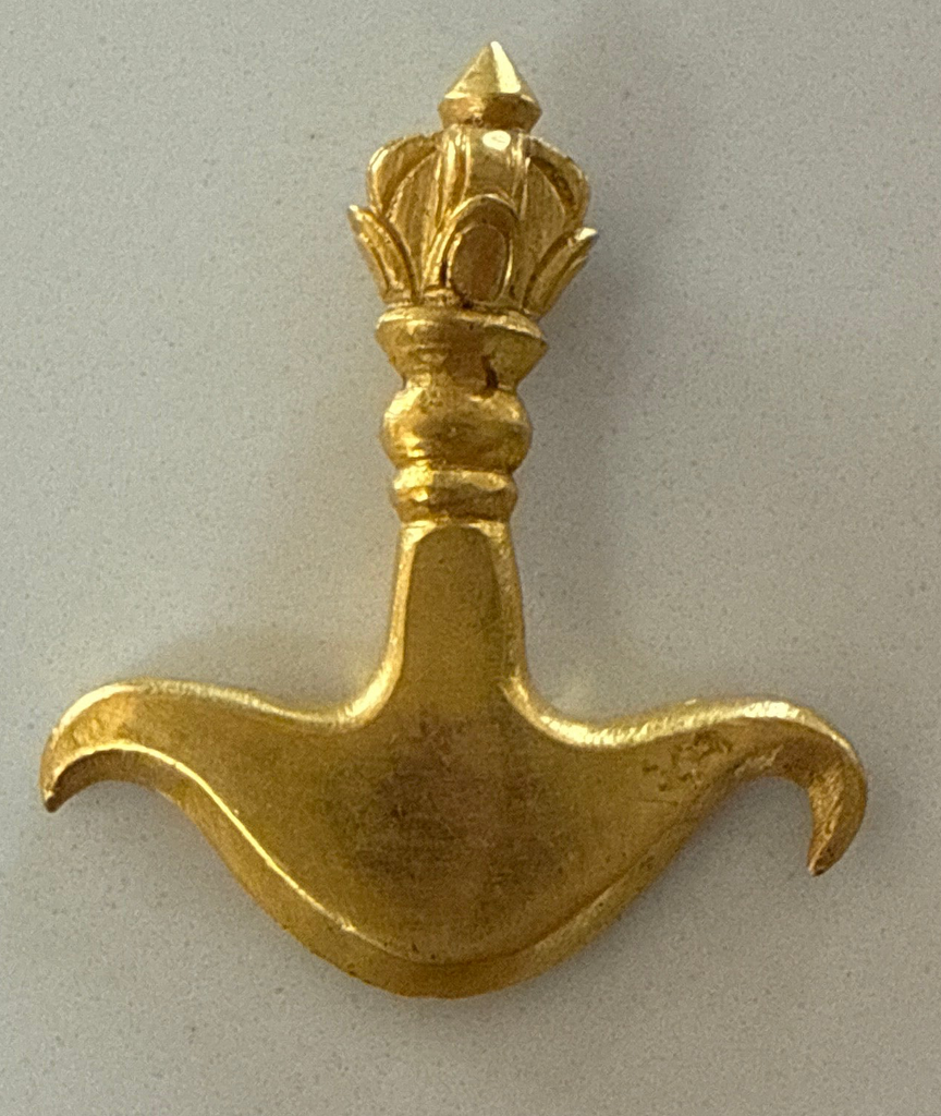 Drikug also known as Curved Knife. Hand made in Nepal from copper with gold. 1.2x1.3 tall”