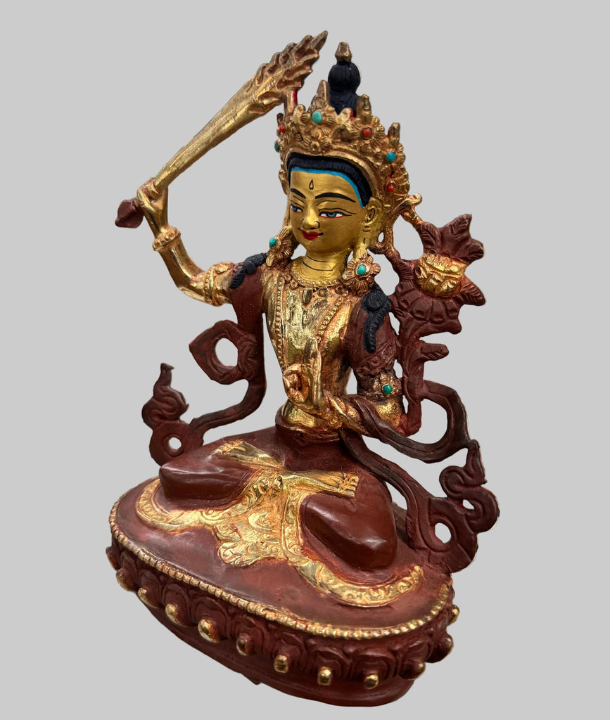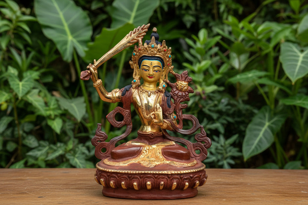 Manjushri is known as the buddha of knowledge and wisdom. The Mantra of Manjushri is: OM AH RA PA TSA NA DHIH!This Manjushri mantra, which includes between Om and Dhih the names of 5 letters, is believed to enhance learning and the skills or, wisdoms, of explaining, debating, writing, memory, and so on.